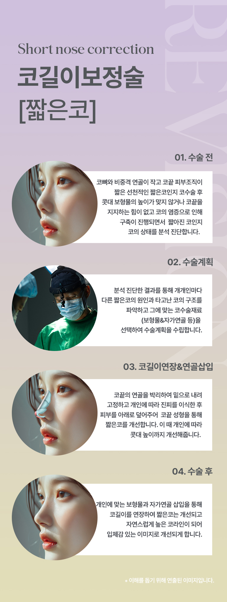 수술을 진행하여 코 길이를 보정합니다.