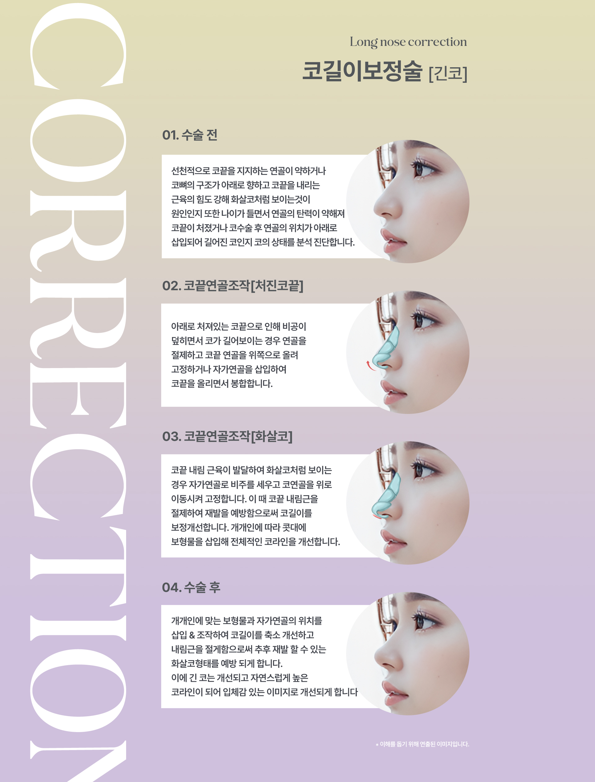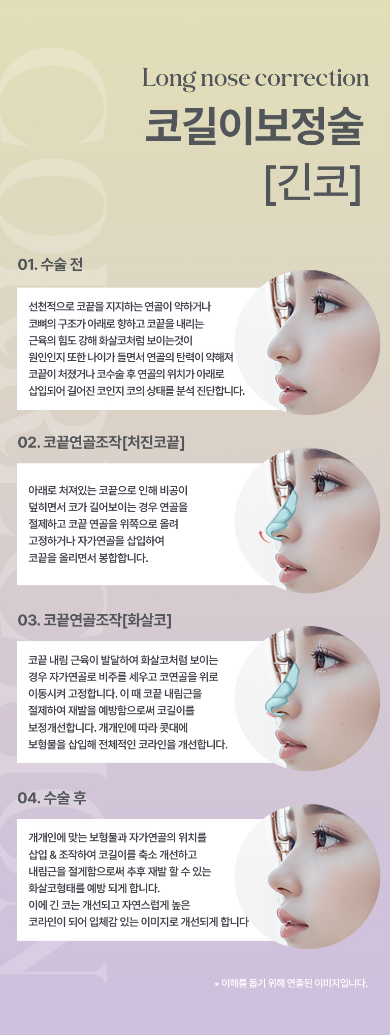 피부탄성 등을 조작하여 코길이는 보정하며 긴 코의